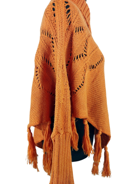 كنزة صوفية (Sweater) تلبس من فوق الرأس (Pullover) - خط عنق مرتفع (Turtleneck)، بدون ياقة، كتف عادي، أكمام طويلة بشكل جناح الخفاش (Batwing) - بني, XL