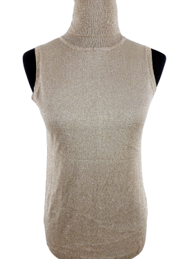 كنزة صوفية (Sweater) تلبس من فوق الرأس (Pullover) - خط عنق مرتفع (Turtleneck)، بدون ياقة، كتف عادي، بدون أكمام - بني, L
