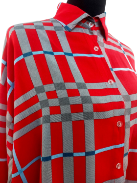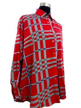 قميص - خط عنق شكل ـ V ـ، بدون ياقة، كتف عادي، أكمام طويلة عادية (Plain) - أحمر, 3XL