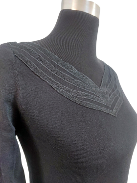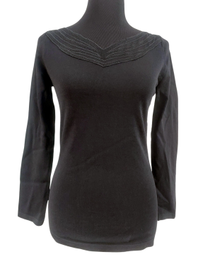 كنزة صوفية (Sweater) تلبس من فوق الرأس (Pullover) - خط عنق شكل ـ V ـ، بدون ياقة، كتف عادي، أكمام طويلة عادية (Plain) - أسود, S