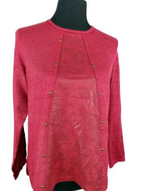 كنزة صوفية (Sweater) تلبس من فوق الرأس (Pullover) - خط عنق دائري، بدون ياقة، كتف عادي، أكمام طويلة عادية (Plain) - خمري, مناسب لأكثر من قياس