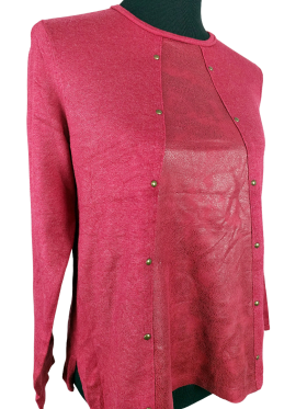 كنزة صوفية (Sweater) تلبس من فوق الرأس (Pullover) - خط عنق دائري، بدون ياقة، كتف عادي، أكمام طويلة عادية (Plain) - زهري, L