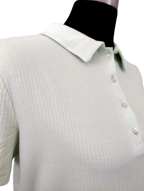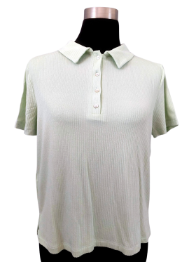 بلوزة - خط عنق دائري، ياقة كلاسيكية، كتف عادي، أكمام قصيرة عادية (Plain) - أخضر, L