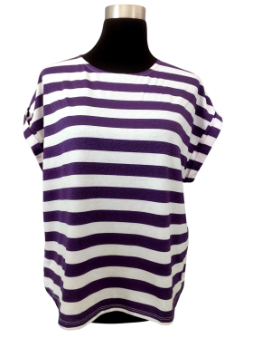 بلوزة - خط عنق دائري، بدون ياقة، كتف عادي، أكمام قصيرة بشكل جناح الخفاش (Batwing) - بنفسجي, M
