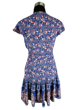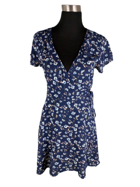 فستان بلوزون (Blouson) - خط عنق شكل ـ V ـ سوربليس (Surplice) بدون ياقة كتف عادي أكمام قصيرة على شكل كاب (Cap) - أزرق, XXS