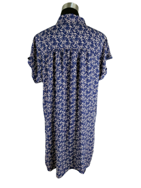 فستان بلوزون (Blouson) - خط عنق دائري ياقة باند (Band) كتف عادي أكمام قصيرة عادية (Plain) - كحلي, مناسب لأكثر من قياس