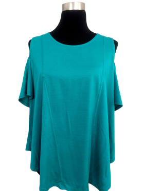 بلوزة - خط عنق دائري، بدون ياقة، كتف من الحمّالات (Strap)، أكمام قصيرة بشكل جرس (Bell) - أخضر, M/L