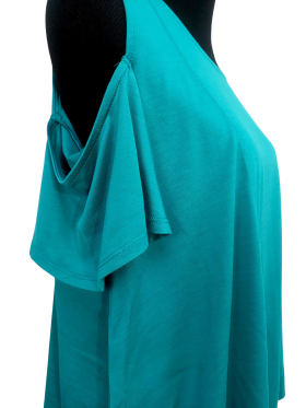 بلوزة - خط عنق دائري، بدون ياقة، كتف عادي، أكمام قصيرة عادية (Plain) - أخضر, M