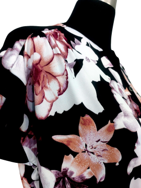 بلوزة - خط عنق شكل ـ V ـ، بدون ياقة، كتف عادي، أكمام قصيرة عادية (Plain) - أسود, L/XL