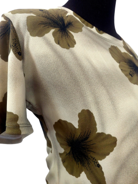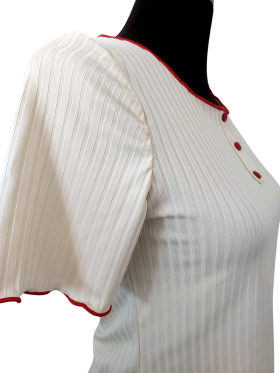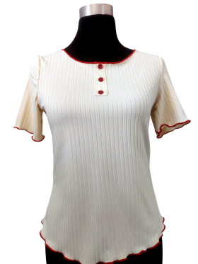 بلوزة - خط عنق دائري، بدون ياقة، كتف عادي، أكمام قصيرة عادية (Plain) - عاجي, S/M