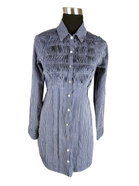 فستان بلوزون (Blouson) - خط عنق شكل ـ V ـ ياقة كلاسيكية كتف عادي أكمام طويلة عادية (Plain) - كحلي, S