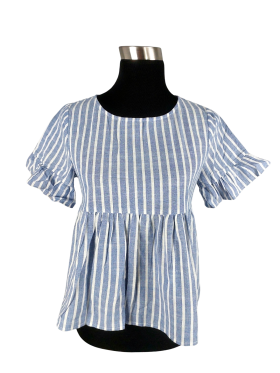 بلوز نسائي, خط عنق دائري, كتف عادي, أكمام قصيرة, أكمام عادية (Plain) - أزرق, محيط الصدر 096سم