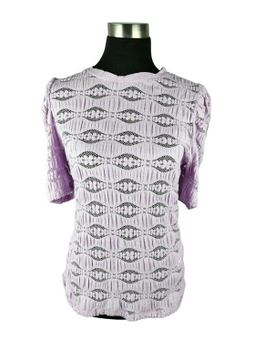 بلوزة - خط عنق دائري بدون ياقة كتف عادي أكمام قصيرة عادية (Plain) - بنفسجي, M