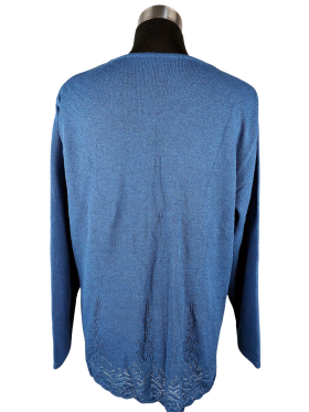 كنزة صوفية (Sweater) تلبس من فوق الرأس (Pullover) - خط عنق دائري بدون ياقة كتف عادي أكمام طويلة عادية (Plain) - أزرق, L
