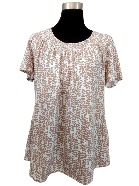 Tunic - No Collar, Round neckline, Regular shoulder, Plain Short sleeve - Tan, L