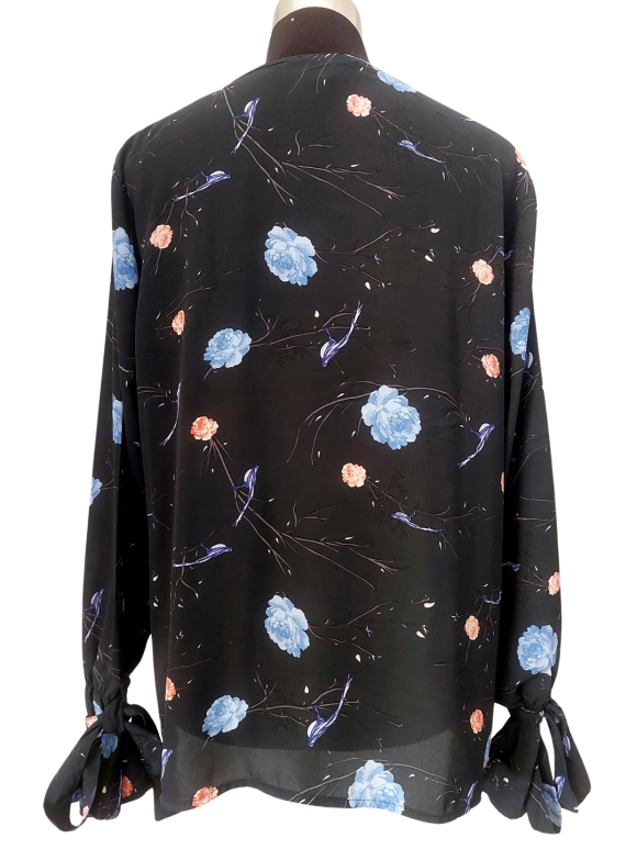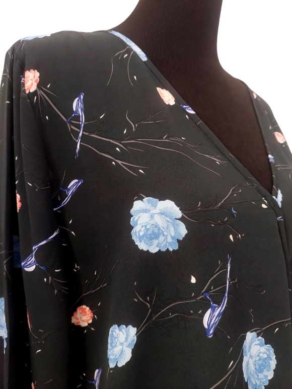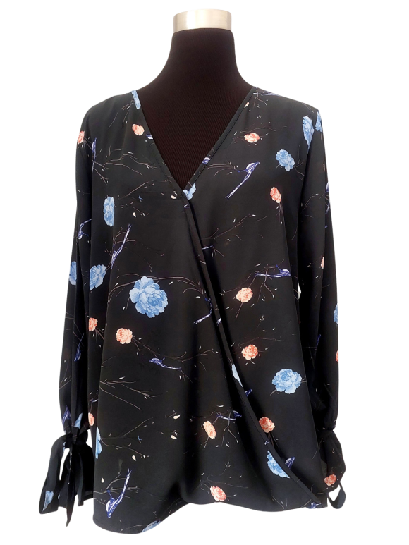 Blouse - No Collar, Surplice (Wrap) neckline, Regular shoulder, Plain Long sleeve - Navy Blue, L