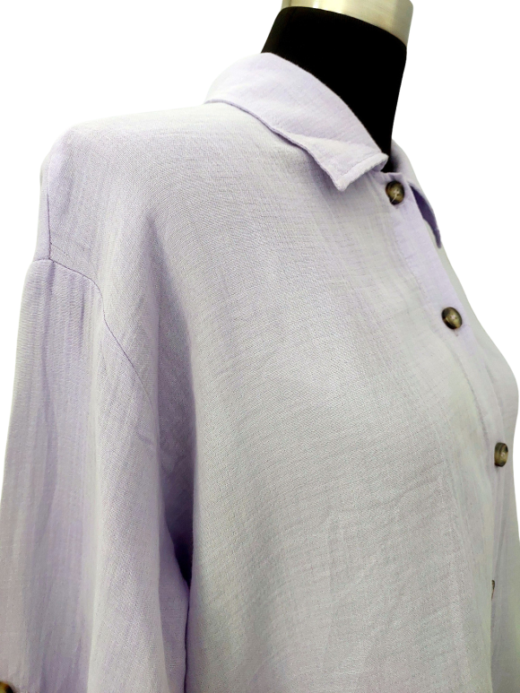 Shirt - Classic Collar, V-Shape neckline, Regular shoulder, Plain Long sleeve - Blue, XL